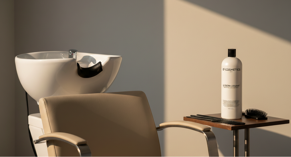 Transformation visible dès le lavage grâce à notre soin lissant professionnel.